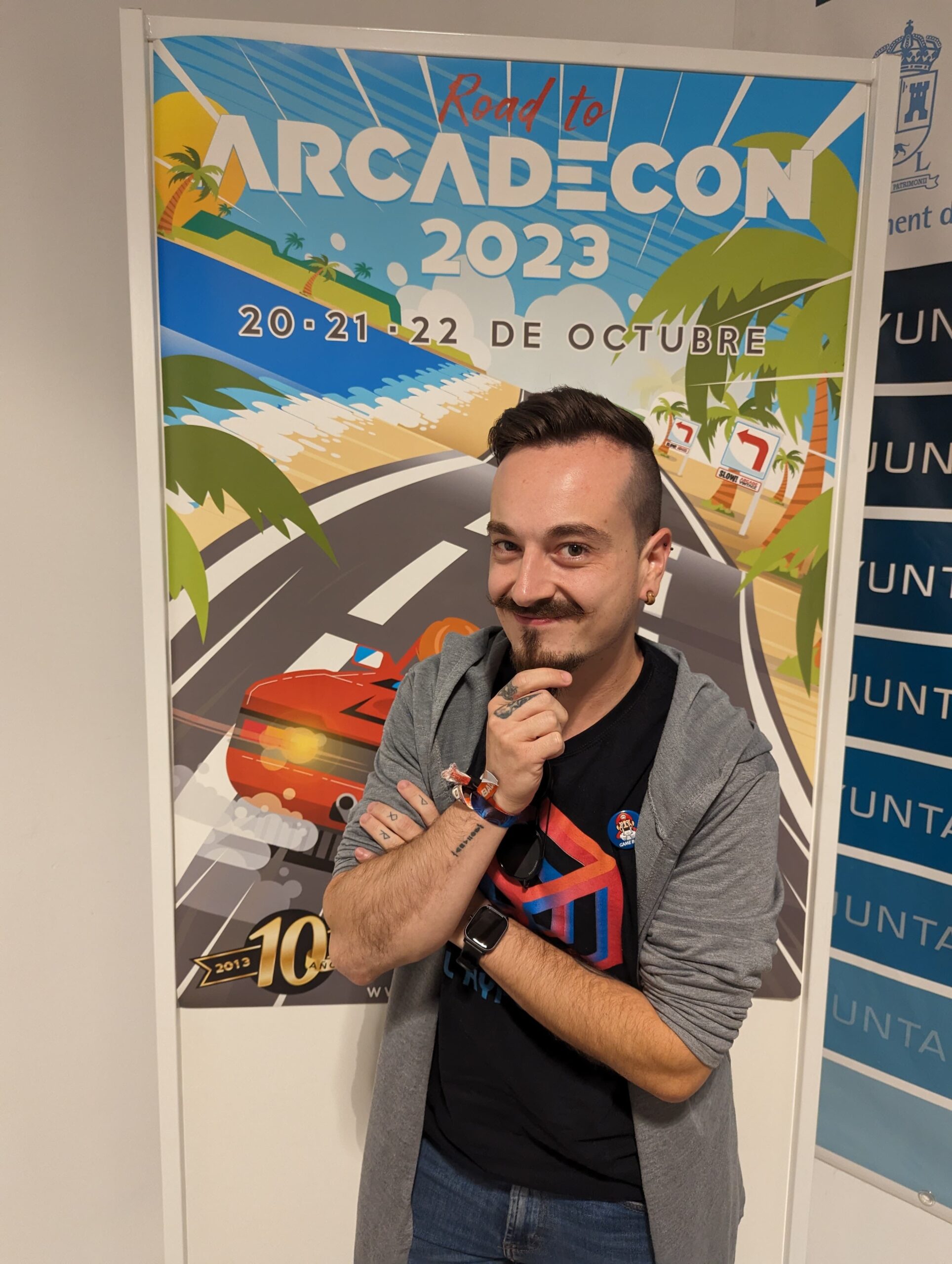 Cartel de la ArcadeCon 2023, coincidiendo con el décimo aniversario de la asociación Arcade Vintage.